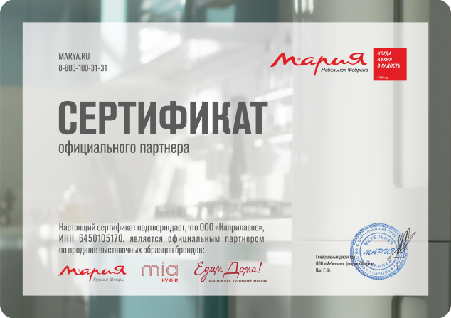 Качественные товары от поставщиков — одна из составляющих Least.sale, на нашем сайте вы можете найти товары известных брендов, таких как: Кухни "Мария", MIA, "Едим дома", Viva Kitchen, Bosch, Samsung, Haier, Gorenje, Blanco, Hettich, Inoxa и многие другие.Мы являемся официальными дилерами Мебельной фабрики "Мария":